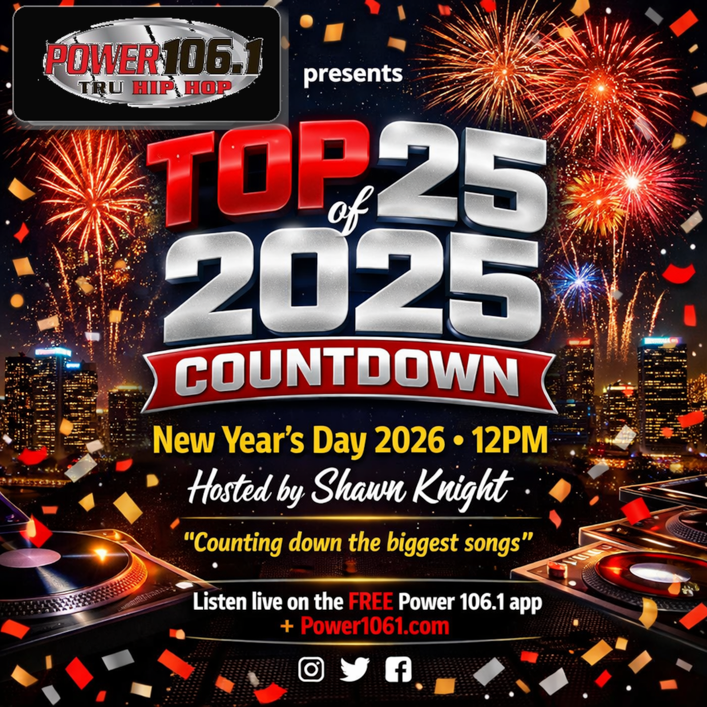 We’ll find out on January 1st, 2026 as we kick off the New Year counting down the Top 25 songs of 2025 on Power 106.1 w/ Shawn Knight.