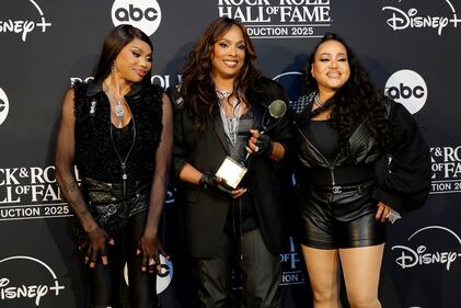 2025 Rock & Roll Hall Of Fame Induction Ceremony - Press Room LOS ANGELES, CALIFORNIA - NOVEMBER 08: (L-R) Sandra Denton aka Pepa, DJ Spinderella and Cheryl James aka Salt pose in the press room during the 2025 Rock & Roll Hall of Fame Induction Ceremony at Peacock Theater on November 08, 2025 in Los Angeles, California. (Photo by Frazer Harrison/Getty Images for RRHOF) (Frazer Harrison/Getty Images for RRHOF)