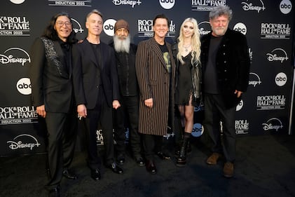 2025 Rock & Roll Hall Of Fame Induction Ceremony - Press Room LOS ANGELES, CALIFORNIA - NOVEMBER 08: Hiro Yamamoto, Matt Cameron, Kim Thayil, Jim Carrey, Taylor Momsen and Ben Shepherd pose in the press room during the 2025 Rock & Roll Hall of Fame Induction Ceremony at Peacock Theater on November 08, 2025 in Los Angeles, California. (Photo by Frazer Harrison/Getty Images for RRHOF) (Frazer Harrison/Getty Images for RRHOF)