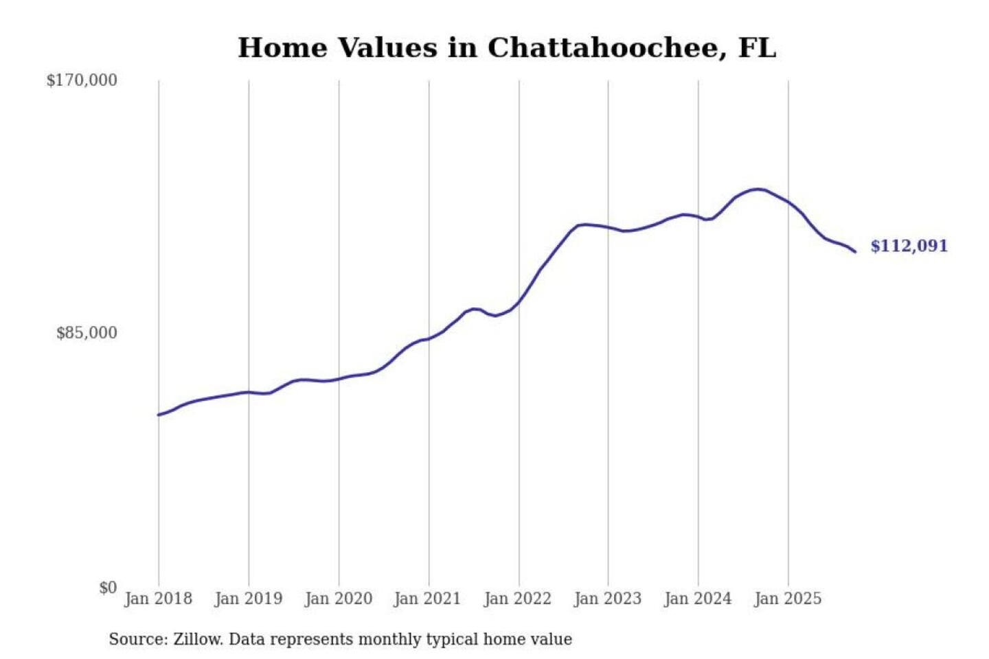 Stacker compiled a list of cities with the most expensive homes in the Tallahassee metro area using data from Zillow. Charts show the monthly typical home value since January 2018. All 11 cities and towns with data available were included in the list.