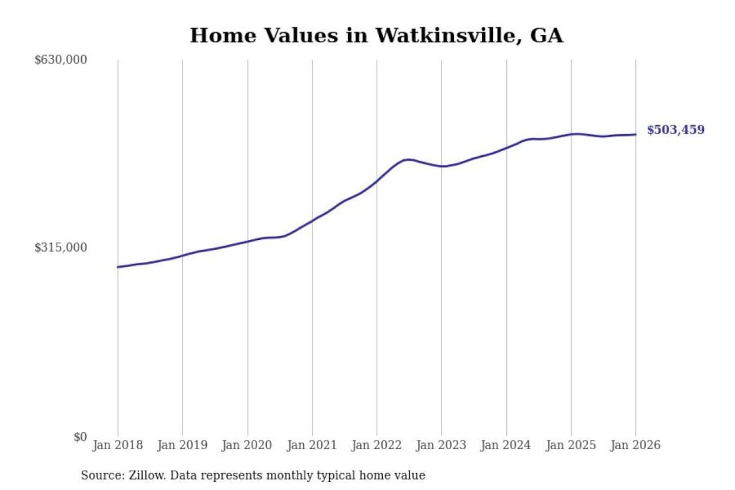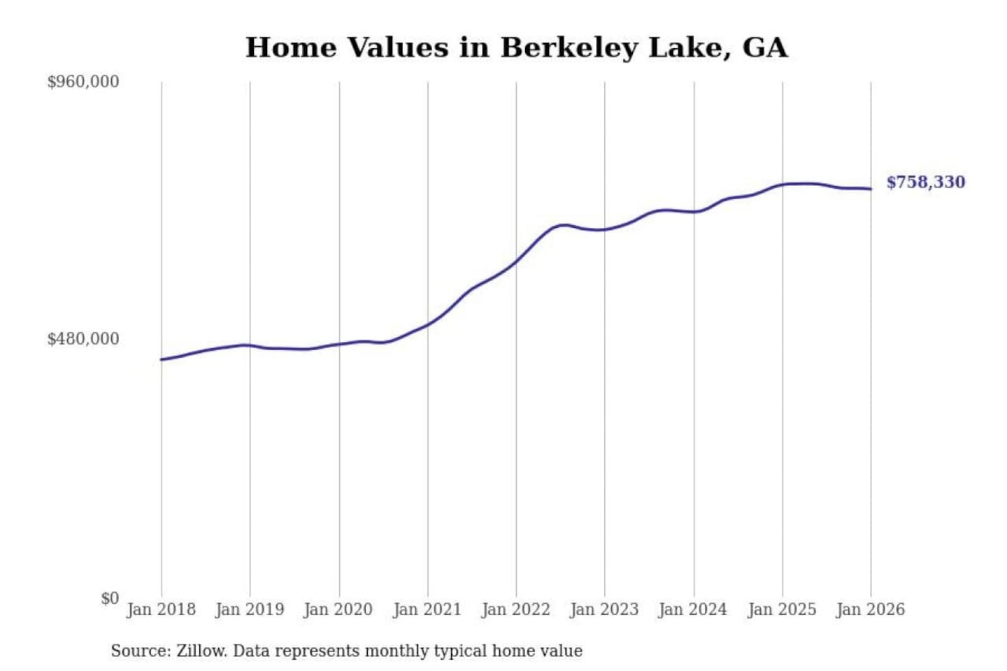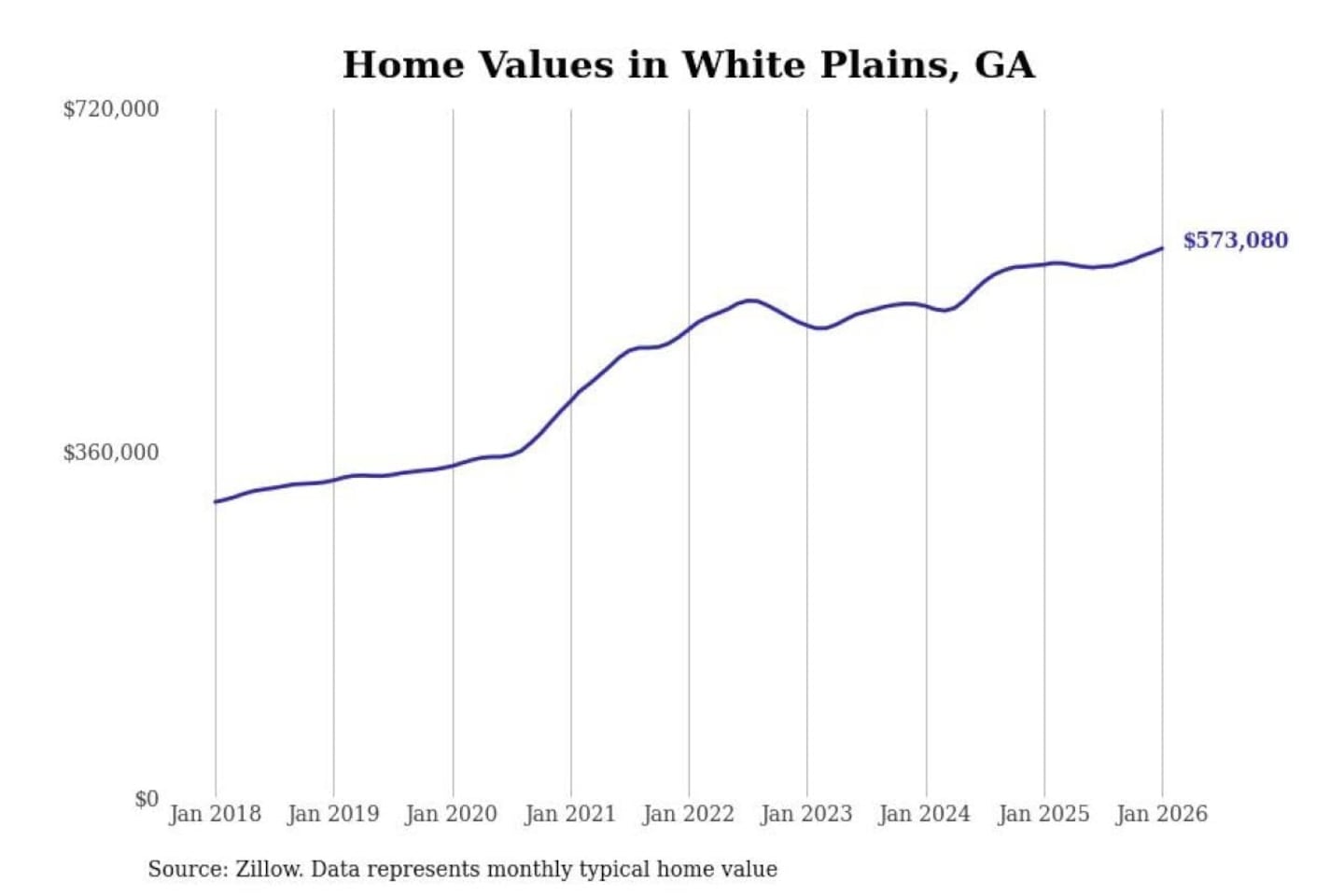 Stacker compiled a list of cities with the most expensive homes in Georgia using data from Zillow. Cities are ranked by the Zillow Home Values Index for all homes as of January 2026. The charts in this story were created automatically using Matplotlib.
