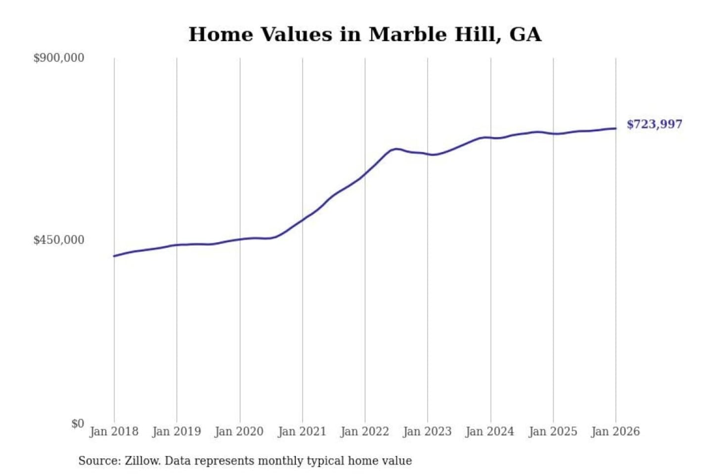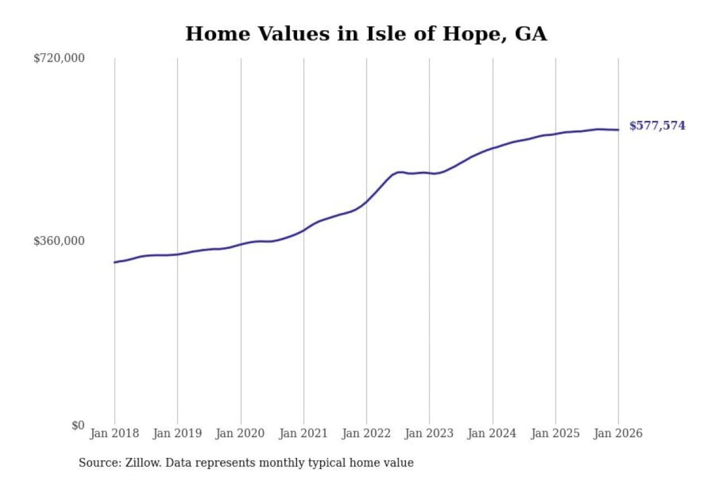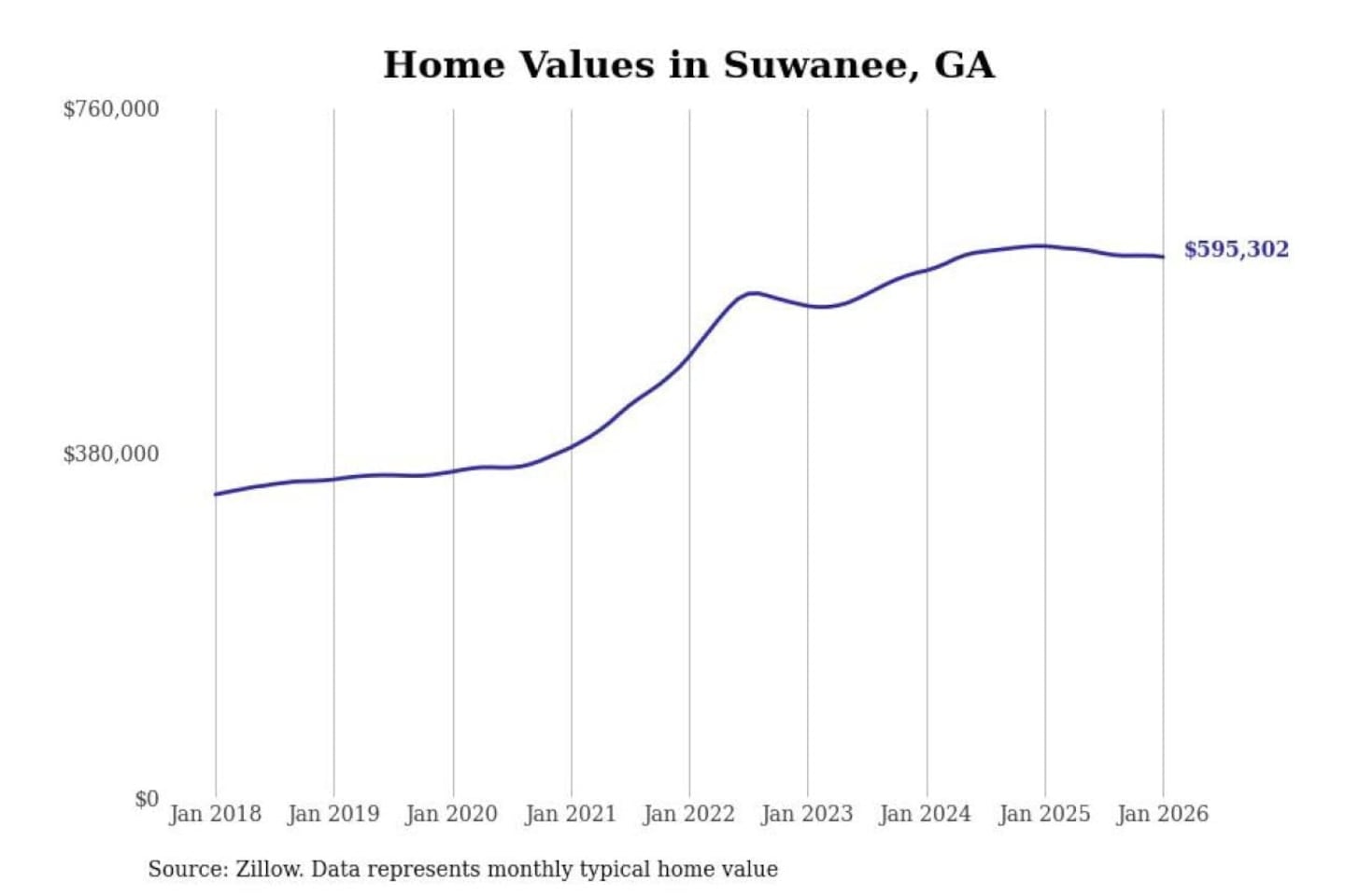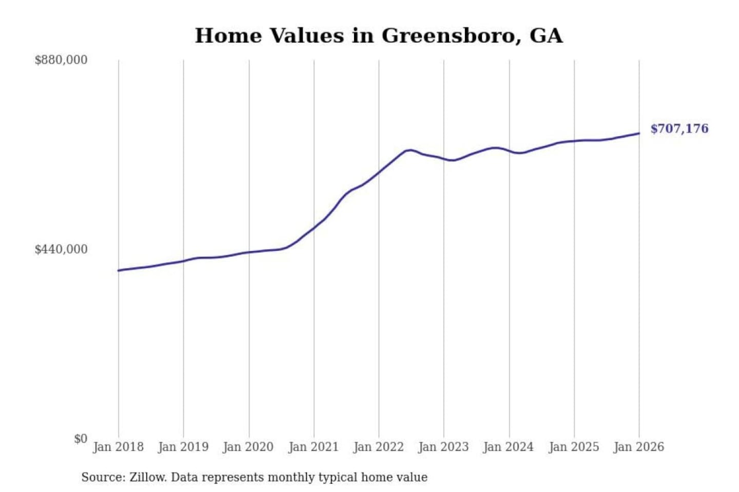 Stacker compiled a list of cities with the most expensive homes in Georgia using data from Zillow. Cities are ranked by the Zillow Home Values Index for all homes as of January 2026. The charts in this story were created automatically using Matplotlib.